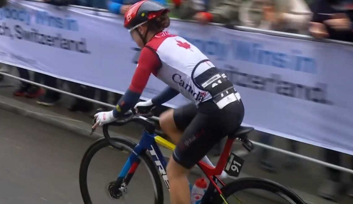 On a wet Saturday chockablock with attacks, Lotte Kopecky defended her world title in Zürich, Switzerland, winning a six-up sprint. Busy all day, the Dutch were shut out of the elite medals but won the U23 championship through Puck Pieterse. Magdeleine Vallieres was top Canadian at 14th, while Ava Holmgren’s 22nd was fourth in the U23 category.