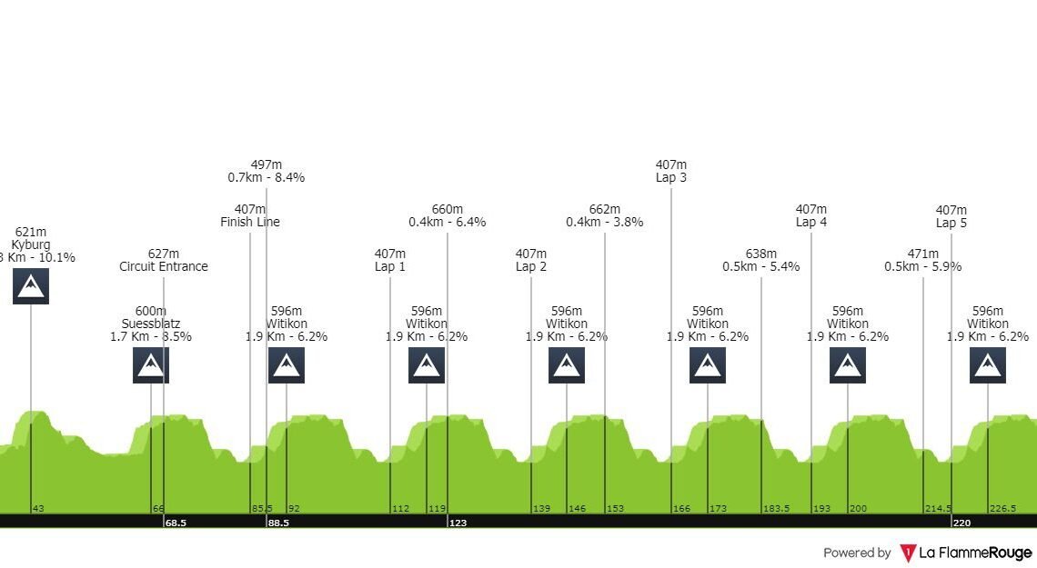The course takes in several of the smaller foothills that surround the Alps in the area. At 273.9 km, there’s an accumulated elevation of 4,470 m.