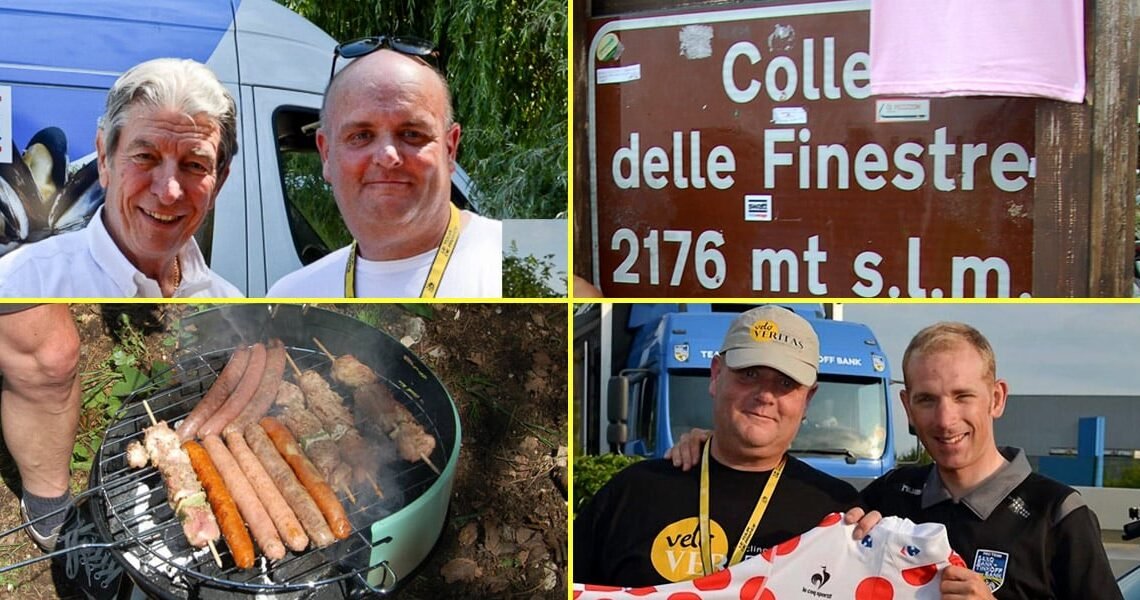 In no time a new plan was devised; we’d drive to the finish at Sestriere, find and cross the finish line against race direction, drive on race route in the wrong direction and make our way up the descent from the top of the Colle Delle Finestre. There’s absolutely no way we could have done that in France – the roads are locked down early and NOTHING except the police goes against race direction – but we thought, with this being Italia… and Bingo! We parked the VW 20 metres from the top and treated ourselves to a celebratory coffee with grappa.