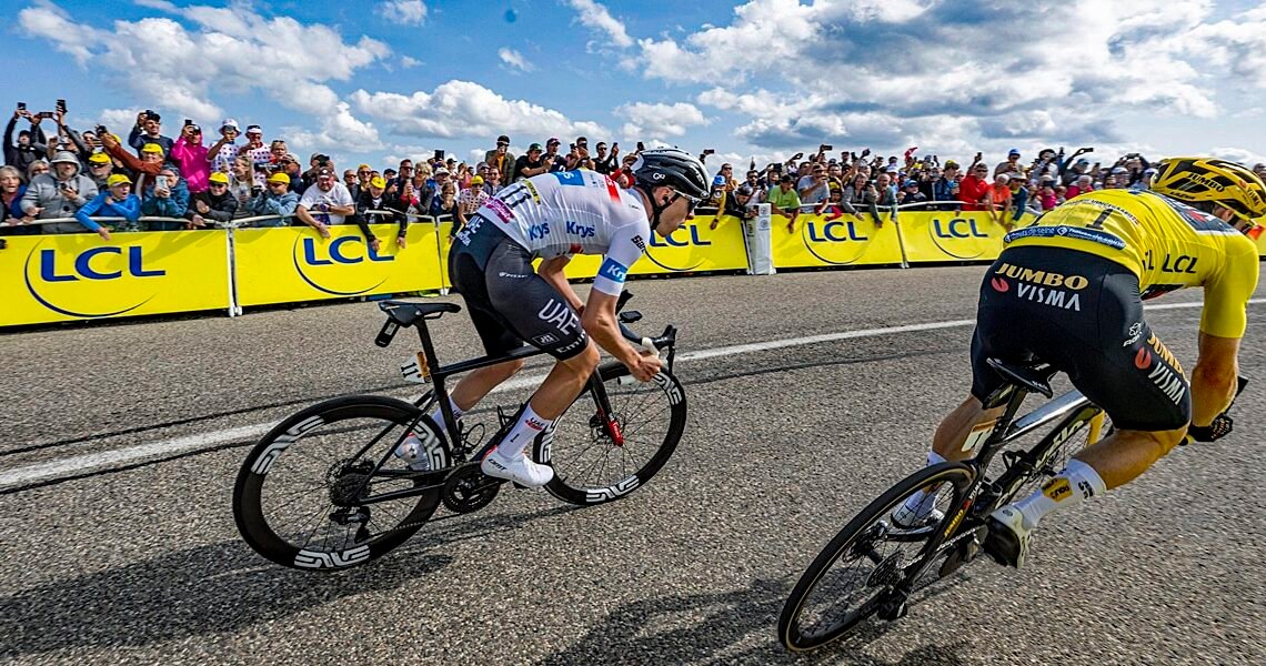 Pogačar and Vingegaard fighting it out for bonus seconds on the Col de Pertus: