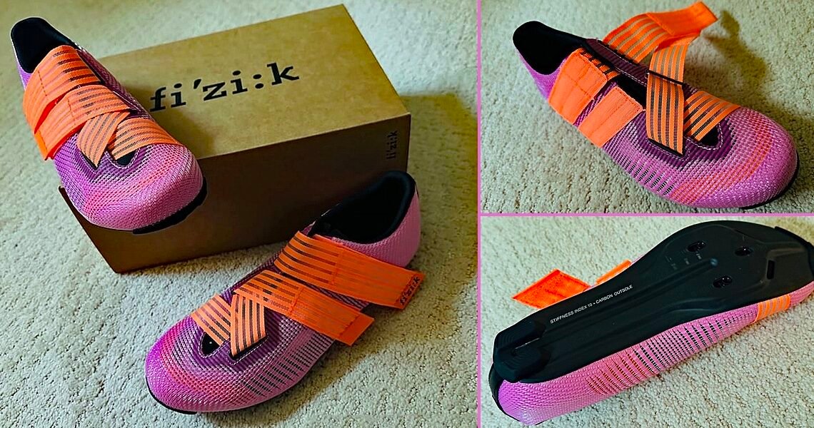 The pink with orange colorway aside, two things stand out about the Fizik Vento Powerstrap Aeroweave.