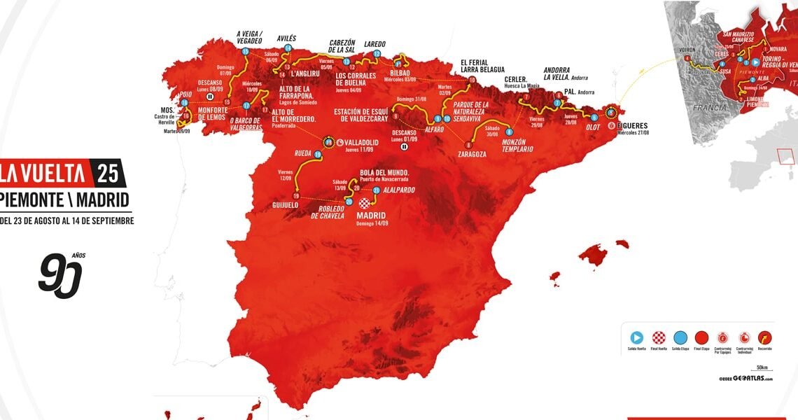 - For the first time, La Vuelta will kick off in Italy, precisely in the Piedmont region, and will also hold stages in France and Andorra, making a total of four countries visited.