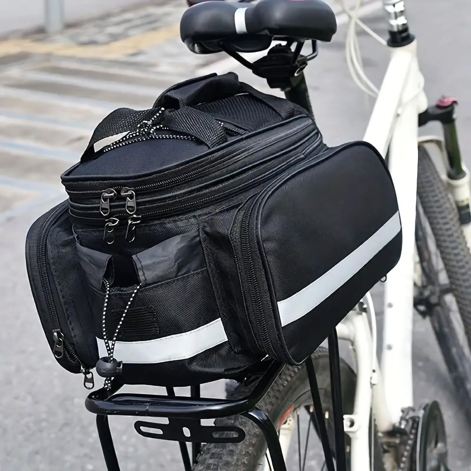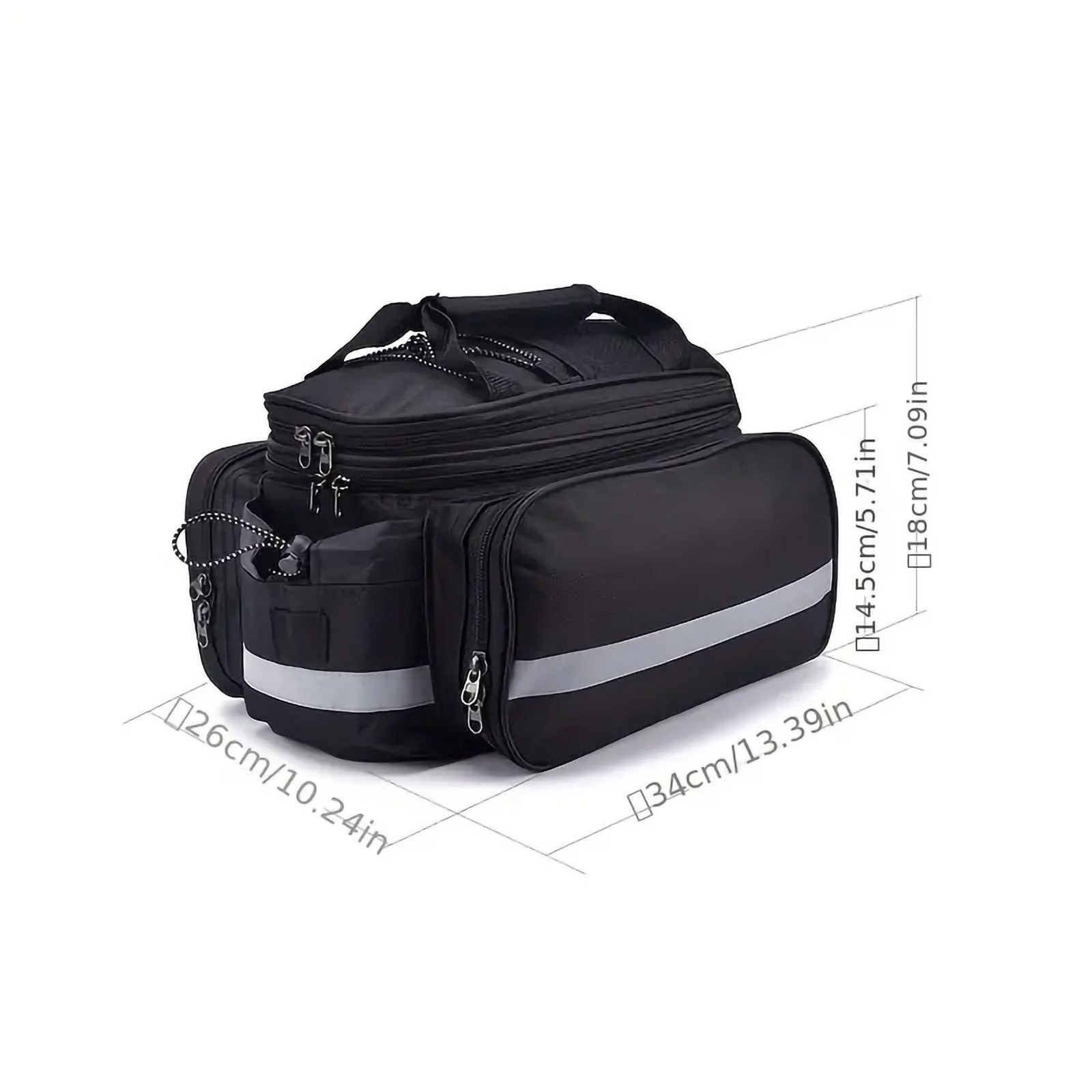 - Secure Attachment: The bag easily attaches to your bike’s rear seat with secure straps or mounting systems, providing a stable and reliable fit that keeps your items safe and easily accessible during your ride.