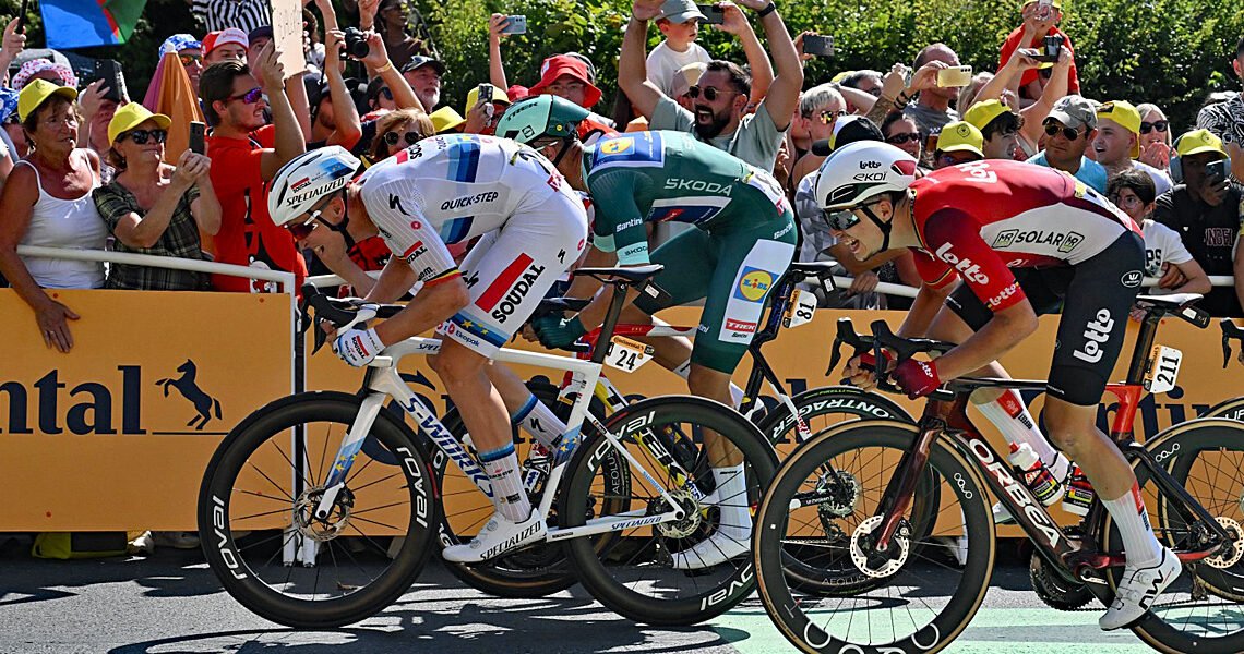 The battle was brutal and Rickaert was done with 6 kilometres to go. Van der Poel was still 30 seconds ahead at that point. He was eventually caught inside the last kilometre (700 Meters). Jonathan Milan smashed the pedals, just like he did in Laval, but this time, he was beaten by Tim Merlier, claiming Soudal Quick-Step’s third win in this year’s Tour.