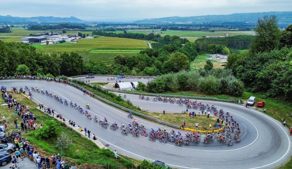 After 157 (or officially 159.6) flat-ish kilometers from Alba that lulled the sprinters into complacency, the race ignited. Four riders—Gal Glivar, Jakub Otruba, Liam Slock, and Sinuhé Fernández—lit off early in a break that hovered about two minutes up the road. A mid-stage sprint at Busca shook things up, the rain started drizzling, and then chaos: Guillaume Martin crashed hard on a descent, and in the trailing carnage, Vingegaard, Pidcock and others went down too. Martin abandoned; Vingegaard quickly recovered and, shepherded by now-trusted domestique Victor Campaerts, even found the presence of mind to blow a kiss to the TV camera as he rode back to the peloton.